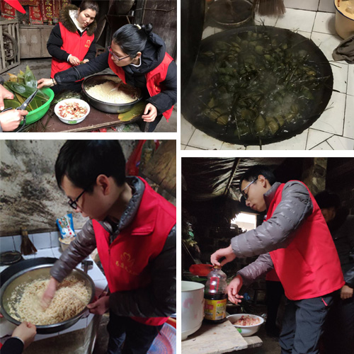 填糯米、放腌制好的五花肉、裹粽葉、扎線……..1月26日,一都江村老爺爺家里格外熱鬧,為康制藥義工志愿者小分隊(duì)聚集在這里,迎新春包粽子為孤寡老人送溫暖活動(dòng)。大家一邊包粽子,一邊交流,和老人拉家常,搞衛(wèi)生,在包粽子現(xiàn)場歡聲笑語、其樂融融、大家都包得不亦樂乎。