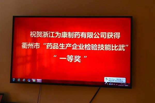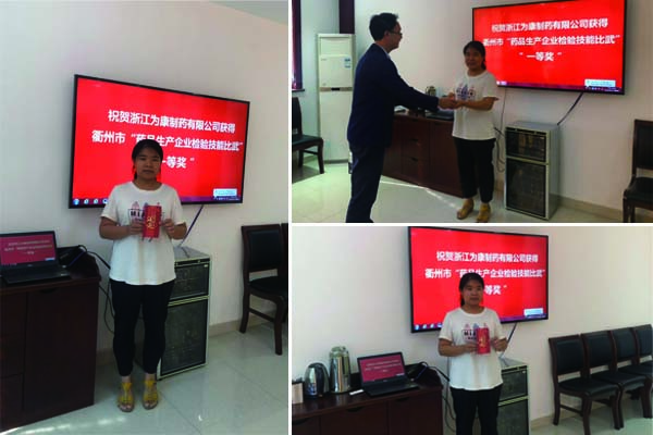 10月15日公司對參加衢州市市場監(jiān)督管理局“藥品生產(chǎn)企業(yè)檢驗技能大比武”的質(zhì)量部員工姜玲頒發(fā)獎金,以資鼓勵,姜玲在參賽中出色的完成了公司所賦予的任務(wù)。